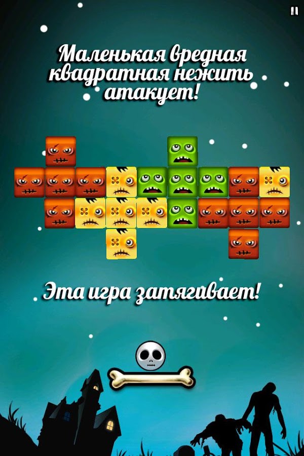Аркада, подходящая как для взрослых, так и для детей. Эта игра в жанре арканойд проверит ваши рефлексы и поможет убить время. Маленькая вредная нежить восстает! Используй свою голову (в буквальном смысле) чтобы остановить полчища маленьких квадратных зомби.