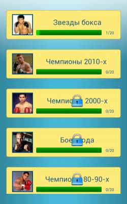 Правила игры просты: угадай фамилию боксера по фотографии. Можно пользоваться подсказками (жми на знак вопроса справа от букв).
