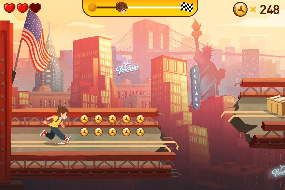 La choco aventure par Poulain - аркадный раннер для Вашего мобильного устройства, по сюжету которого сумасшедший учёный украл волшебные бобы. Эти бобы необходимы для производства шоколада, и вернуть их вызвался юный герой, в роли которого Вы и будете играть. Вам предстоит путешествие по 6 крупным городам мира. Преодолевая препятствия, собирайте различные бонусы и награды на пути к Вашей цели.