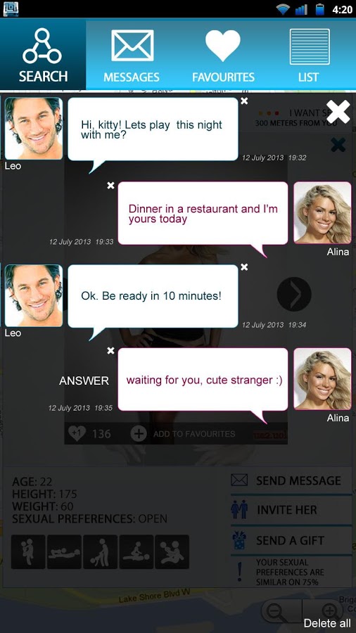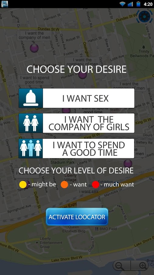 ♥ Локатор - новая социальная сеть для взрослых, позволяющая искать партнёров для сексуальных утех за считанные минуты. Сервис представлен как для лиц традиционной сексуальной ориентации, так и для лиц различных сексуальных меньшинств. Так, например, если Вы парень и хотите познакомиться с парнем, предварительно указав это в регистрации, то Вам будут отображаться на карте только геи или бисексуалы. Если Вы девушка, желающая познакомиться с девушкой для разделения интимной близости, то Вам будут показываться на карте только девушки. Приложение абсолютно конфиденциально. То есть если Вы гей и не хотите это афишировать - никто не узнает данную информацию. Безопасность данных - первое и самое важное правило Локатора!