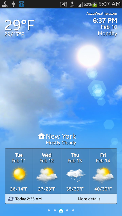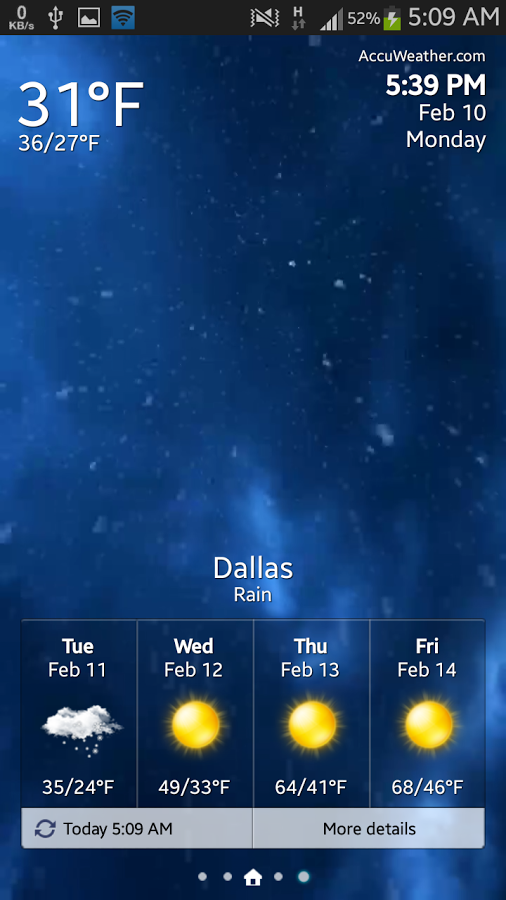 Анимированный прогноз погоды: реалистичные видео эффекты, подробные данные Всемирной службы погоды. Изысканно выполненные реалистичные видеоэффекты облачности, дождя и снега обеспечивают яркое ощущение текущих или будущих погодных условий для более чем 50000 мест по всему миру.