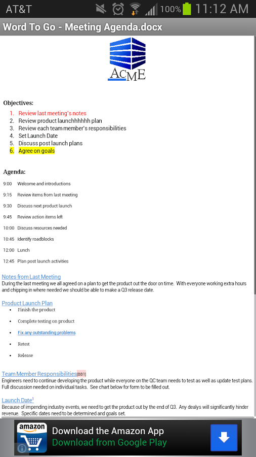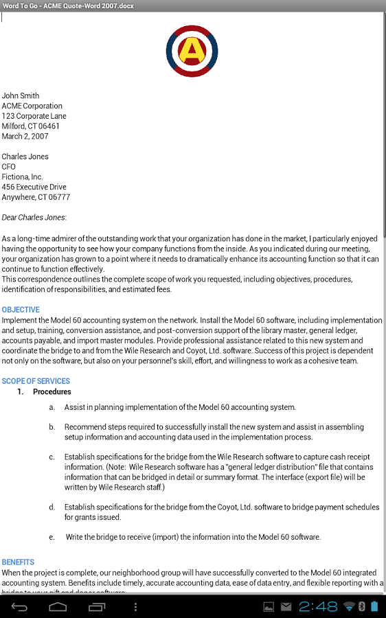 - Загружать файлы из Google Docs в Docs To Go, просматривать и редактировать их.
