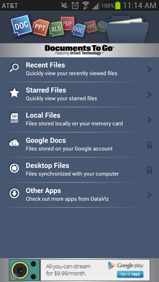 Documents To Go - приложение для редактирования, просмотра и создания документов формата Microsoft Word, Excel и PowerPoint на Андроид.