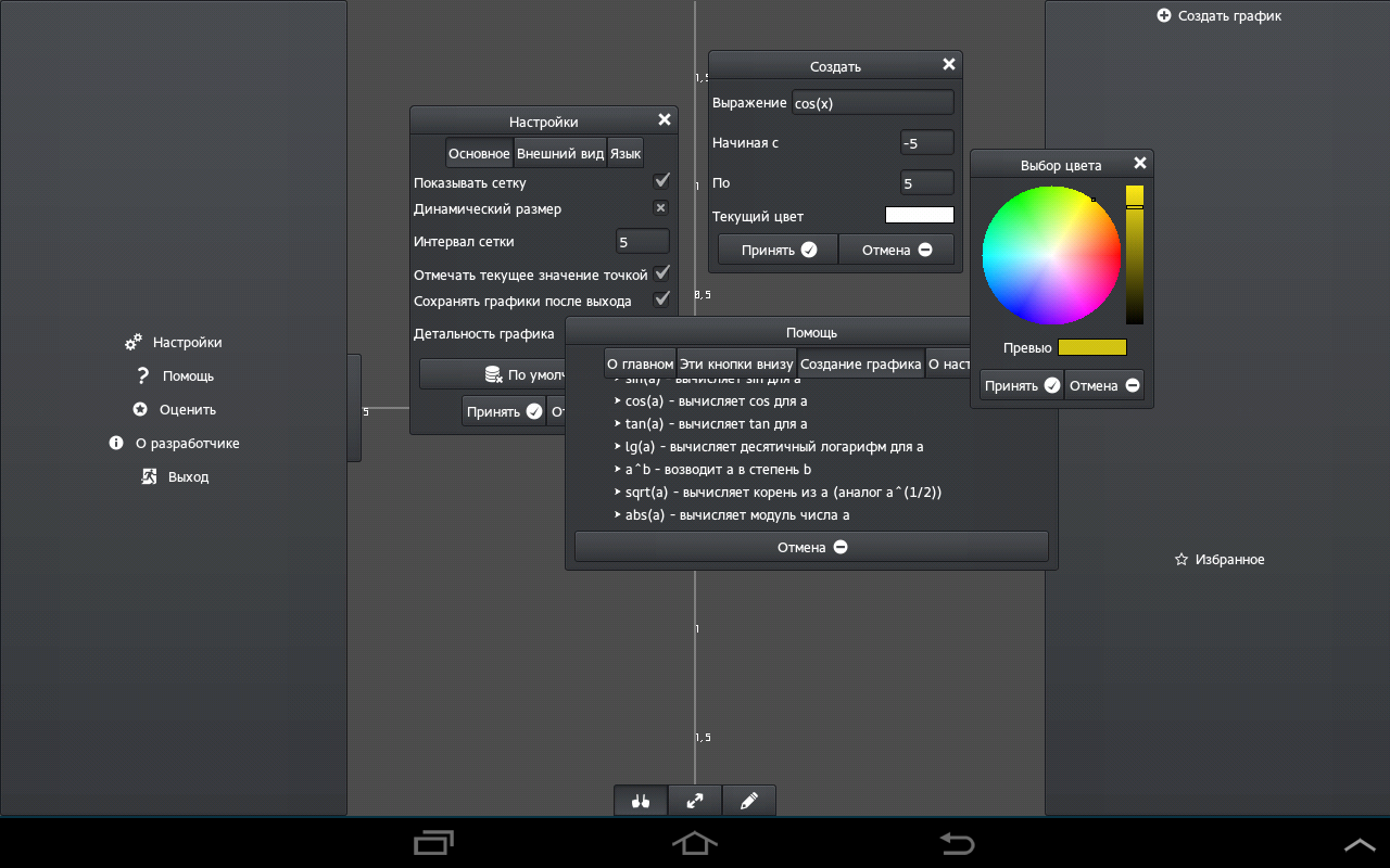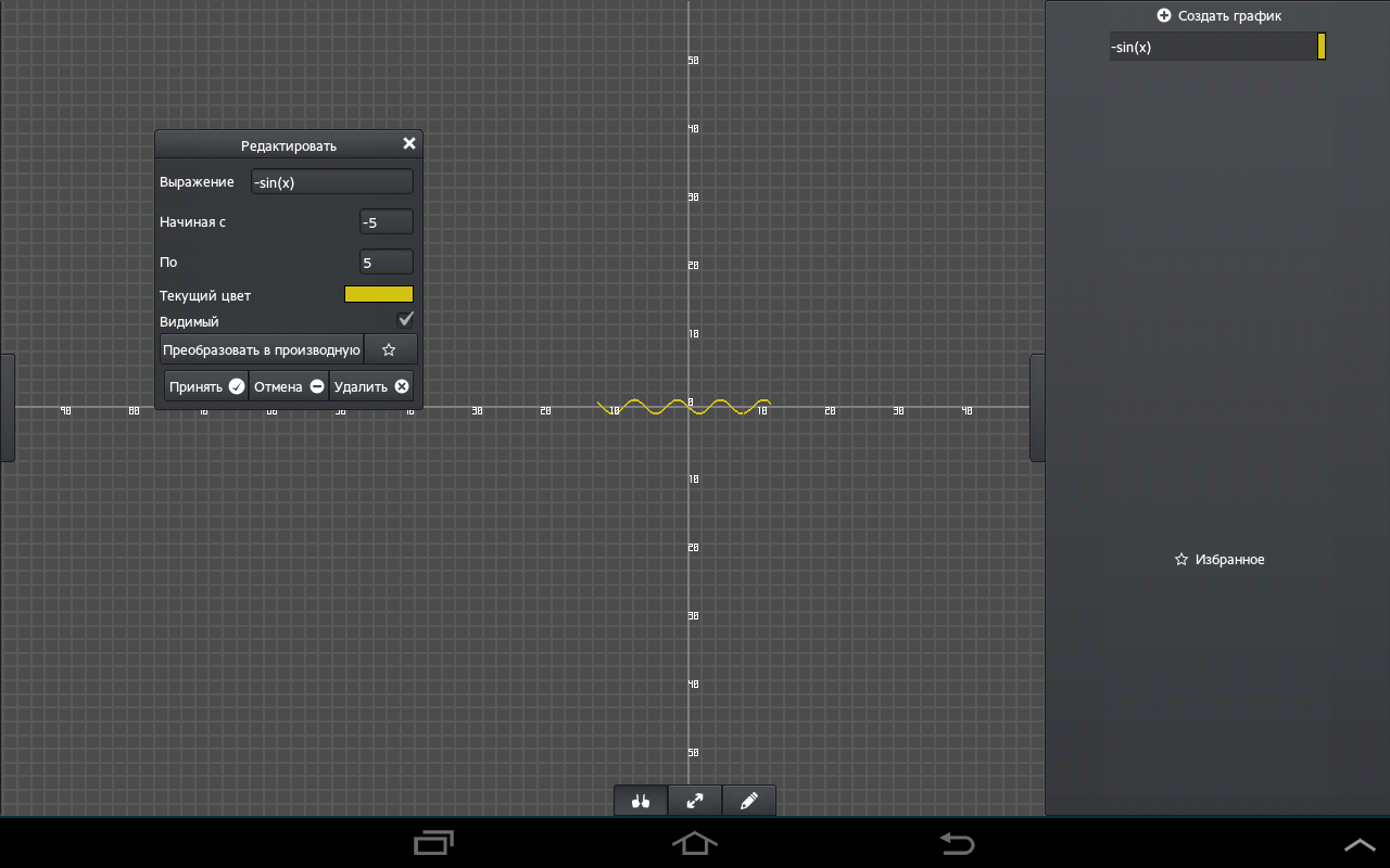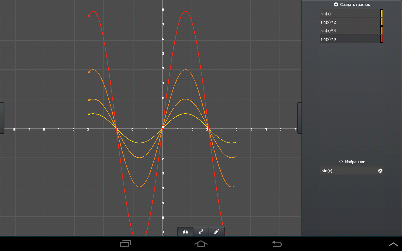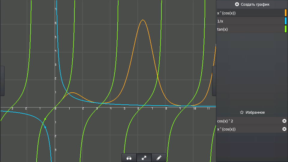 Построение графиков, создание производных из имеющихся функций, бесконечное количество отображаемых графиков, "избранные" функци