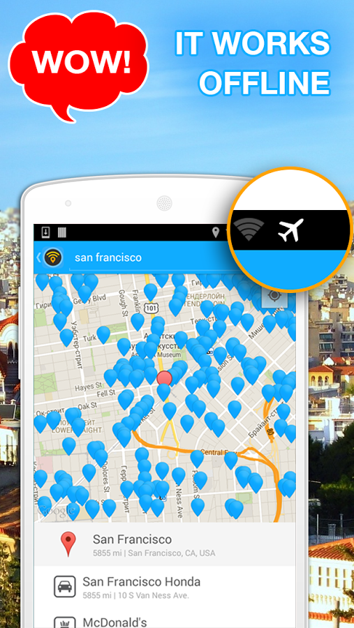 Теперь все точки wi-fi мира у вас в кармане! Пароли к точкам доступа и комментарии к ним от реальных людей. Вы сможете добавить новую сеть или уже воспользоваться созданной точкой. Более 3400000 пользователей по всему миру и 2000000 точек доступа к сети интернет. Также с данным приложением можно узнать, где именно находится ближайший от вас wi-fi.