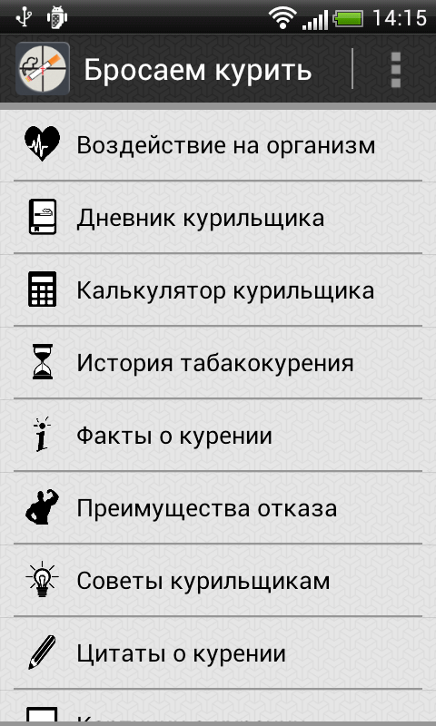 Данная программа не является 100% средством для борьбы с табакокурением, но содержит много информации, над которой стоит задуматься, и которая поможет вам бросить курить.