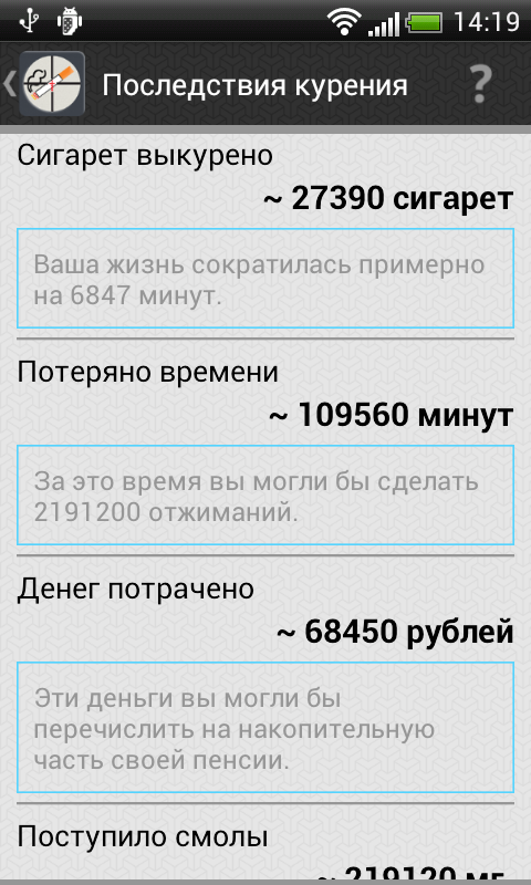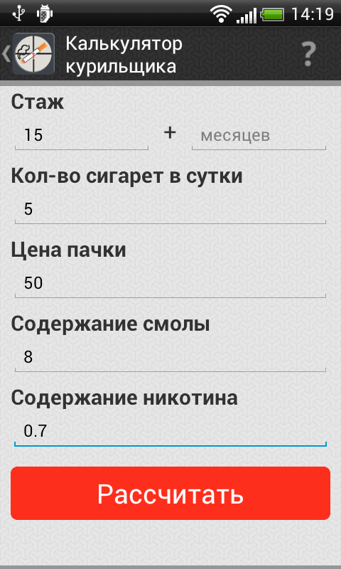 - Калькулятор курильщика.