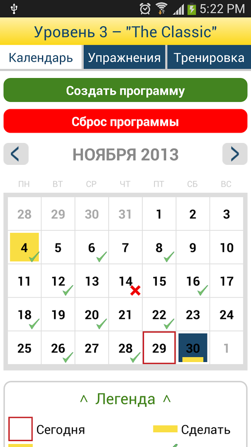 - Оптимальное временное планирование для этого определённого типа тренировки с рекомендацией сколько раз в неделю, и на сколько недель, вы должны продолжать тренировки, чтобы перейти на следующий уровень.