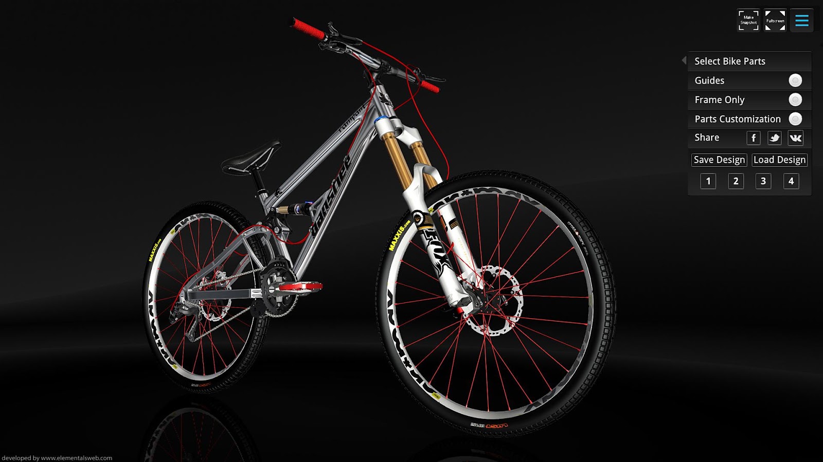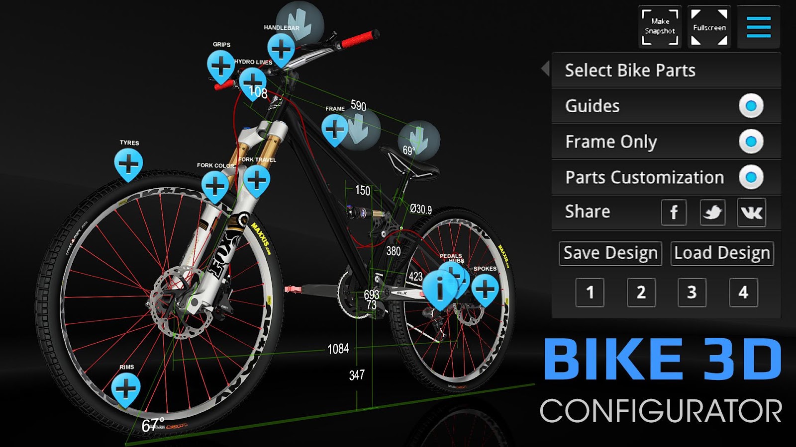 Приложение Bike 3D Configurator позволит в полноценном 3D сконфигурировать велосипед и посмотреть как он будет выглядеть.