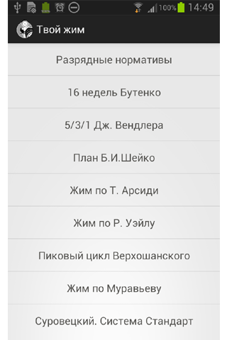 - Встроены и постоянно обновляются популярные программы тренировок:
