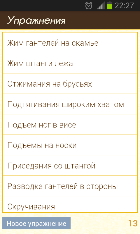 ★ редактирование списка выполняемых упражнений во время тренировки.