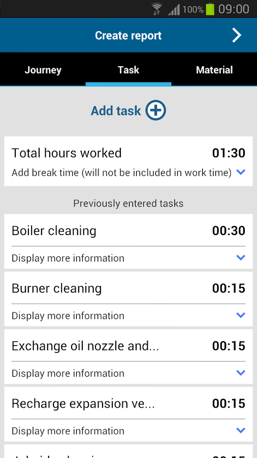 - Oтчет: Быстрая и простая регистрация прибытия, выполненных работ и использованного материала — прямо на месте у клиента; Полный архив отчетов с возможностью сортировки по дням или клиентам; Надежность выполнения взятых на себя обязательств, что подтверждается цифровой подписью отчета; Функция экспорта отчета в PDF для быстрой передачи в бухгалтерию и клиентам; Создание профиля своей фирмы, включая фирменный логотип для экспорта в PDF