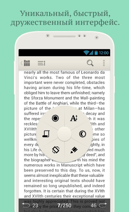 - 3 режима чтения: постраничный режим, режим "две страницы", режим "свиток"