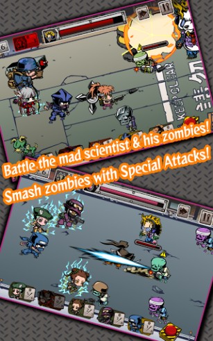 Апокалипсис уже близок! Сумасшедший доктор создает армию модифицированных зомби, чтобы захватить весь мир. Свою атаку он начинает именно с вашего города. Вы, как истинный герой, противостоите ему с помощью армии, которую собираете из добровольцев. В вашу задачу будут входить не только битва с зомби, но и обучение своих воинов, среди которых есть и солдаты, и самураи, и даже ниндзя! Объединяйте своих солдат, чтобы создать суперсолдата четырех уровней! С помощью армии суперсолдат вы сможете противостоять зомби в бою. Наведите цель касанием пальца и начинайте бой! Если вы выиграете, то сможете собрать сокровища на поле боя. Побеждать можно с помощью различных атак: убийство, стрельба, взрывы, удары, мечи. Вы сможете объединяться с другими игроками по всему миру и побеждать армию зомби вместе! Освободитесь от повседневного стресса, уничтожая врагов, и живите долго и счастливо!