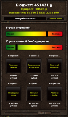 - Развивайте вооружённые силы - более 100 стран претендуют на ваши территории.