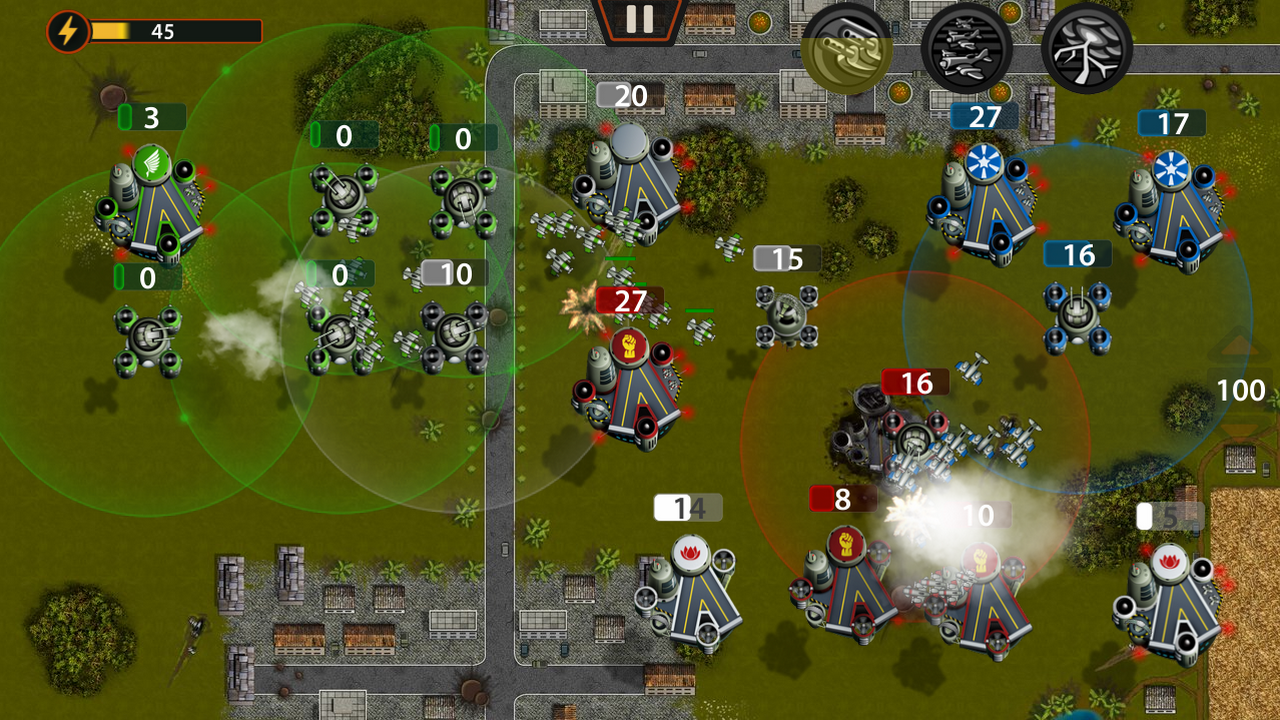 В игре вас ждет большое количество уровней в 5 различных режимах - скучать вам не придется. Оригинальные юниты – летающие аэродромы, ПВО, радары, уникальные самолеты для каждой враждующей стороны, качественная графика. Приятно играть как на телефонах, так и планшетах с экранами любого размера.