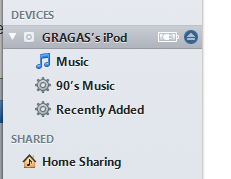 7. После синхронизации, можно извлечь iPod, для этого нажмите маленькую стрелочку рядом с его названием, и отключите от USB.