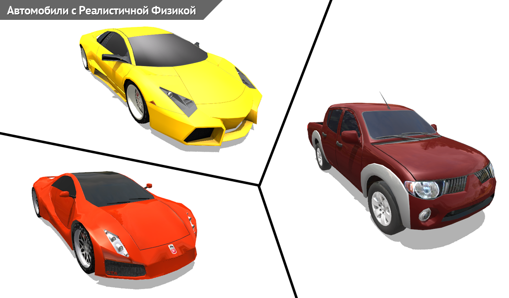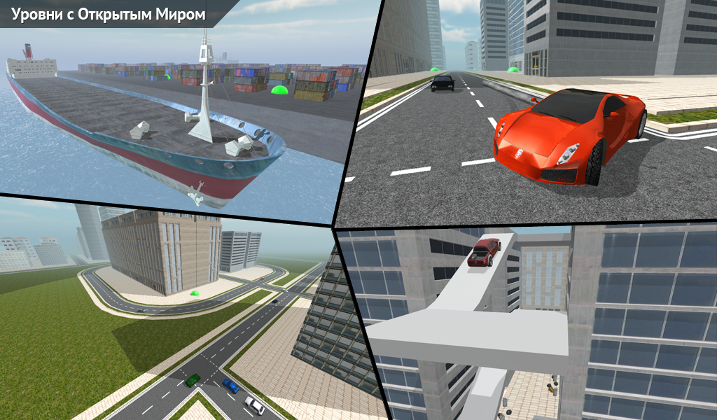 - Три типа управления: тач, акселерометр и рулевое колесо;