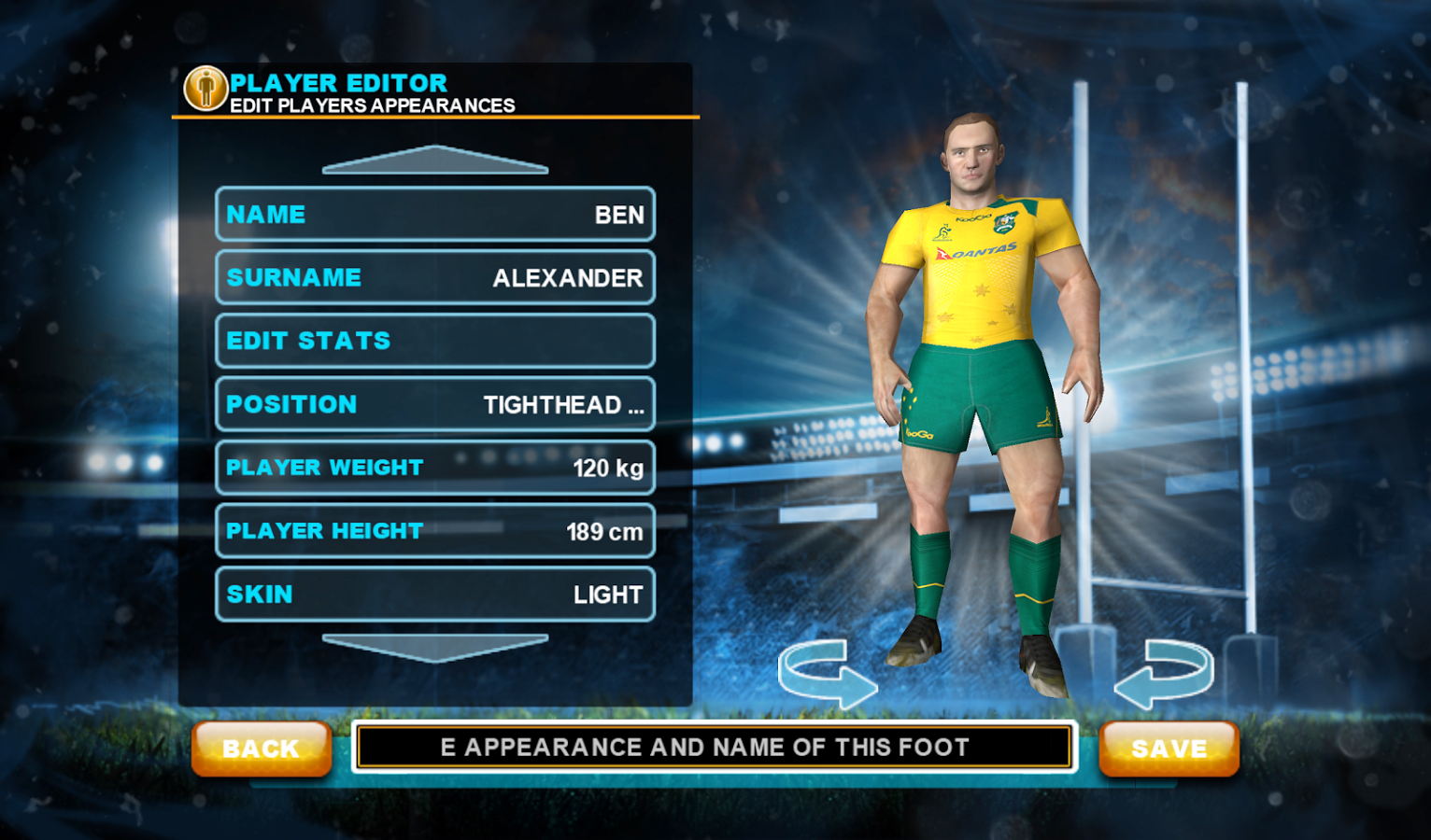 Приготовьтесь к жаркой игре, тем более, что вместе с вами будет играть настоящая мировая звезда регби – Джон Лому. Выкладывайтесь на все сто, чтобы привести свою команду к победе! В игре доступен как режим быстрой игры, так и международный чемпионат. Однако что бы вы в итоге ни выбрали, игра обещает быть интересной и захватывающей!