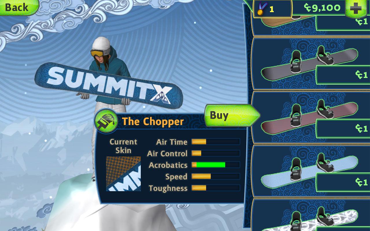 SummitX Snowboarding - аркадный симулятор сноубординга для Вашего мобильного устройства. Прочувствуйте скорость и получите свою порцию адреналина при спуске на высокой скорости. Заезды Вы будете осуществлять на 6 различных локациях-горах. В общей сложности Вас ожидает более 36 уровней, на протяжении которых Вы сможете отточить своё мастерство в этом виде спорта.