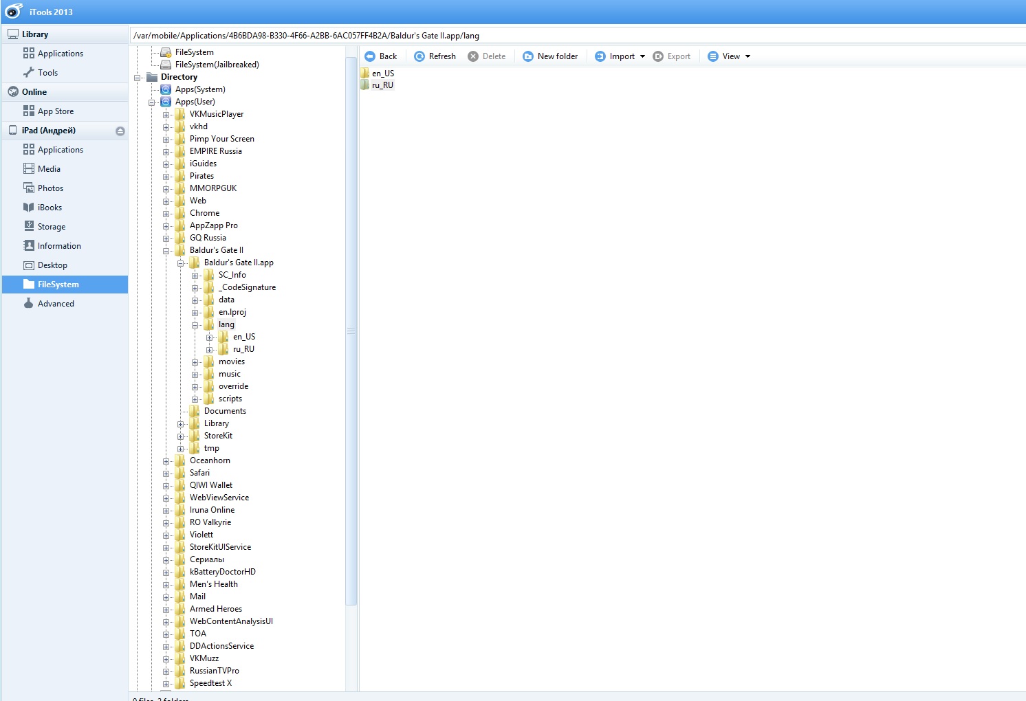 Распаковываем архив. Заходим в iTools и идем в меню, как на скриншоте. Там ищим вашу игру. Кидаем папку "ru-RU" в корневую папку "lang", после чего заходим в игру => настройки => нажать на кнопку "Languages", выбираем русский язык "Russian" и перезапускаем игру.