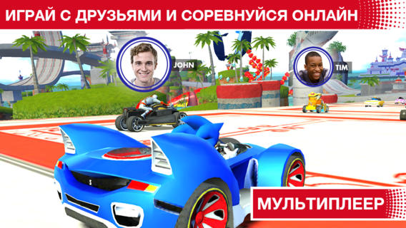 Участвуйте в гонках в роли Соника и других знаменитых персонажей! Устремляясь по трассе, по воздуху и по волнам, будьте готовы к трансформации - ваш удивительный транспорт может превращаться из машины в катер и даже самолет! Никогда еще игры на мобильных платформах не были так увлекательны!