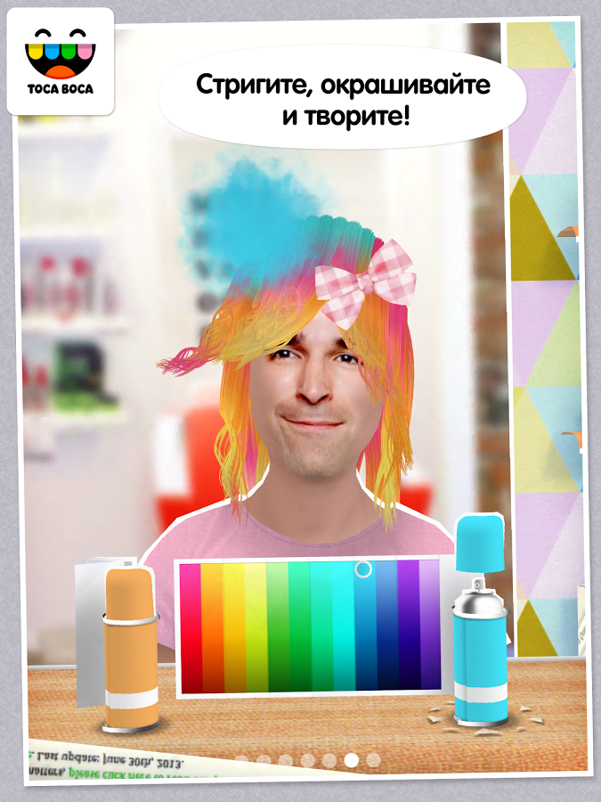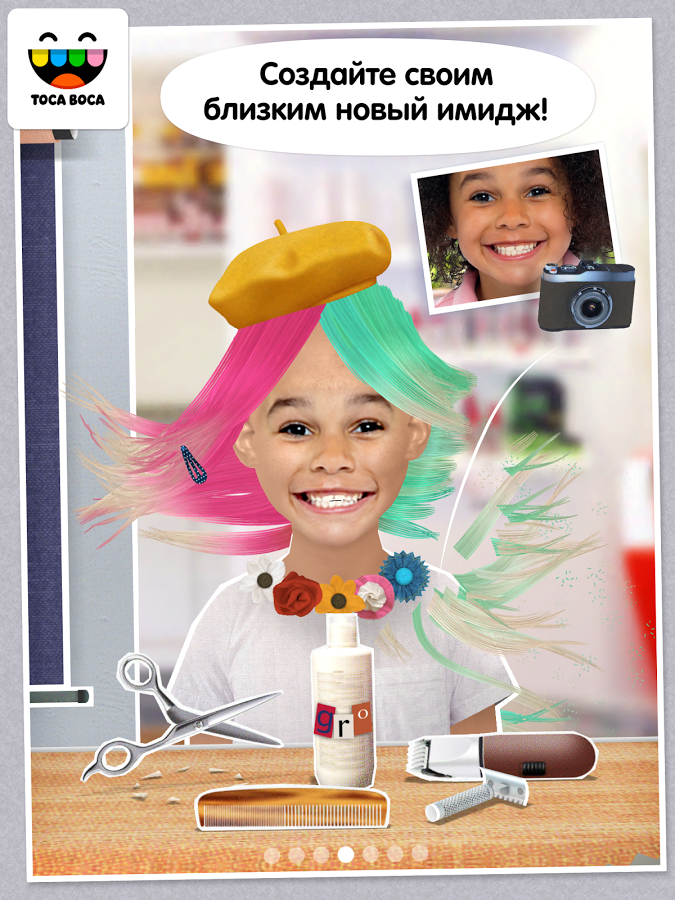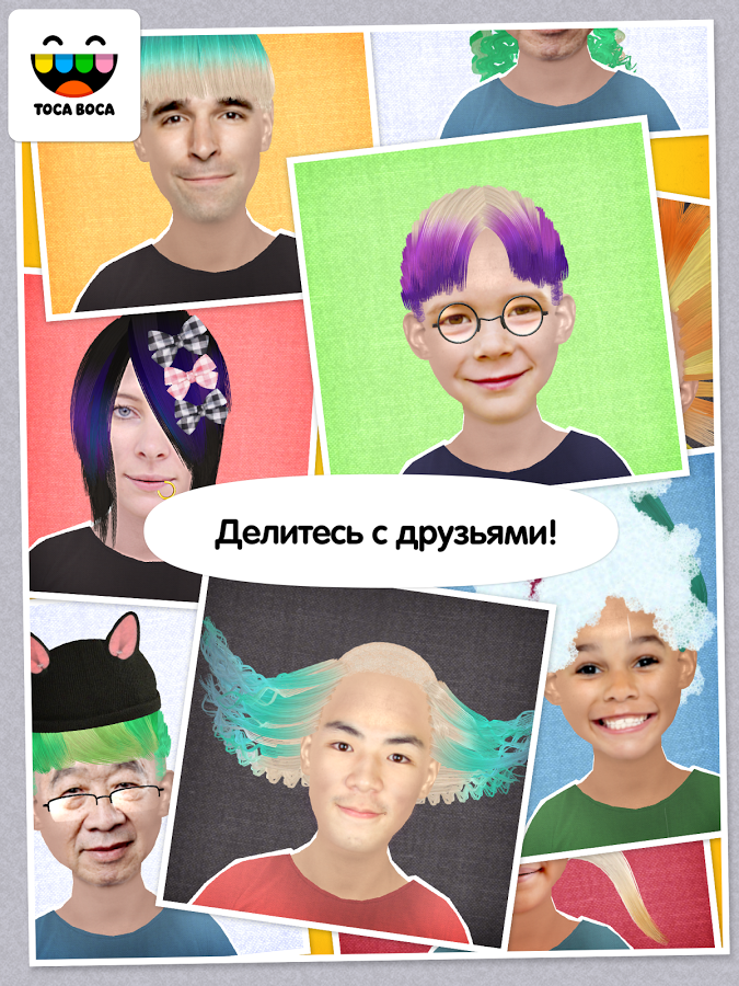 Придумывайте и воплощайте прически мечты для себя или своих близких! Выпрямляйте, завивайте, наращивайте, состригайте, безжалостно сбривайте; а то, что получилось, окрашивайте во все цвета радуги. Все это возможно в Toca Hair Salon Me!