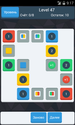 Два основных правила игры - заполнить цветом все доступные клетки игрового поля, при этом в 'начальных' клетках не должно оставаться неиспользованных значений. На игровом поле также часто могут быть размещены специальные клетки, которые усложняют задачу. Для дополнительной информации нажми 'Как играть?' в главном меню приложения.