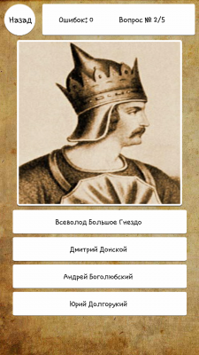 В приложении присутствуют два типа вопросов: Изображения личностей и текстовые вопросы.