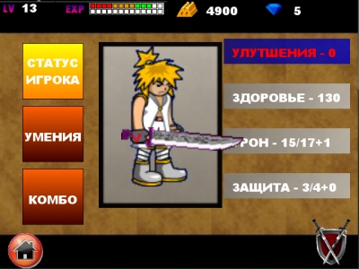 В меню улутшения. В разделе Статус Игрока вы можете улутшить ваши статы за очки умений которые вы получаете за новый уровень, для улутшения нажмите на нужный стат. В разделе Умений вы можете улутшить умения игрока за алмазы, которые вы получаете в аркадном режиме или за каждую 5 волну в выживании, для улутшения нажмите на зелёную стрелку. В разделе Комбо вы можете покупать и улутшать ваши комбо, как их использовать написано в информации о комбо.