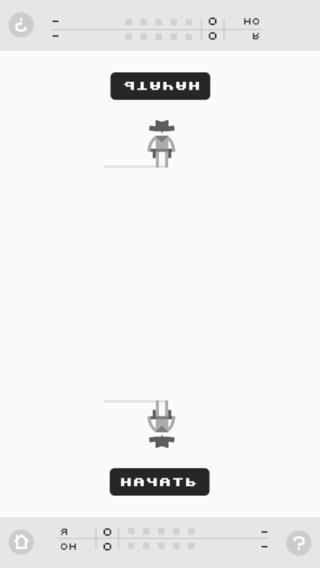Суть игры заключается в том, чтобы первым выстрелить в оппонента после слов Ready… Steady… Bang! Причем пауза перед «bang» всегда случайная, что иногда заставляет понервничать. Для выстрела нужно нажать в любом месте вашей половины экрана. То же самое делает и второй игрок.
