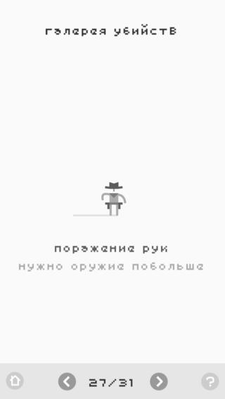 Ready Steady Bang — интересная и простая аркада о ковбоях и их непростой жизни. Графика в стиле минимал, на белом фоне отображены лишь два маленьких пиксельных ковбоя и ничего более. Персонажи хорошо анимированы и забавно «умирают» в зависимости от того, куда вы попадете (все абсолютно случайно).