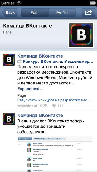 Стороннее приложение Вконтакте для iOS