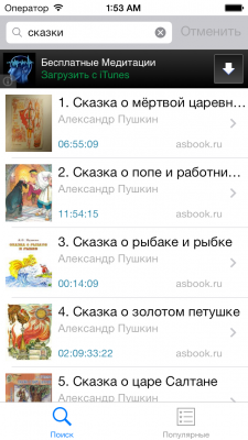 Прослушивайте ваши любимые аудиокниги онлайн с помощью этого приложения абсолютно бесплатно! Не нужно ничего скачивать, просто выберите интересующую вас книгу и начните проигрывание. В приложении имеется удобный поиск по названию книги или по фамилии автора. Для поиска и воспроизведения требуется подключение к интернету.