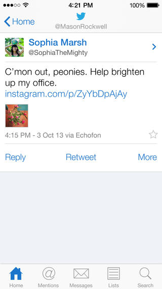 Практически все это время основной упор программы делался на минимализм и удобство. Все элементы и необходимые органы управления сконцентрированы в одном окне. Настройки программы очень хорошо организованы и позволяют задавать оптимальное поведение программы. К примеру, есть возможность прикреплять изображения с использованием горячих клавиш. Что, несомненно, делает Echofon удобнее. Так же присутствует возможность передать в Echofon информацию об активной странице, открытой в данный момент в Safari. При этом передается не только адрес страницы, но и ее заголовок. Помимо этого, есть возможность передать информацию от iTunes о том, какая именно композиция проигрывается в данный момент времени. В основной ленте сообщений по умолчанию отображается, кто начал читать мой твиттер. Тут же можно просмотреть профиль данного человека в боковой панели и принять решение, стоит ли читать его в ответ. Так же в основной ленте показываются все мои записи, что были добавлены пользователями в избранное. Единственное, придется привыкнуть к всплывающим окнам написания нового сообщения. Как по мне, так это несколько ломает дизайн программы. Если же вам необходим еще и дополнительный функционал, вроде как поделиться активной страницей Safari или вам важно отслеживать, кто начал следовать за вами и кто и какие сообщения добавил в избранное, то стоит обратить внимание на Echofon for Twitter.
