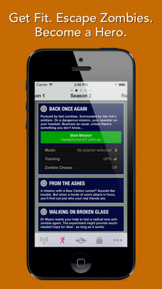 Zombies, Run! - приложение с дополненной реальностью для людей, занимающихся спортом. Работает следующим образом: Вы надеваете наушники и отправляетесь на пробежку, следуя указаниям голоса из приложения. Вам предстоит выполнять различные миссии, собирать еду, бонусы, оружие и медикаменты. Это приложение скрасит Ваши однообразные пробежки и сделает занятие спортом более увлекательным.