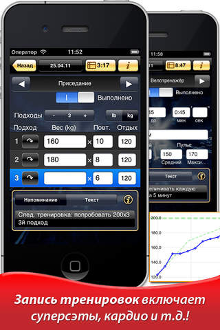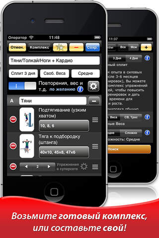 - возможность выбора между программами по набору мышечного объема и тренировки на силу;