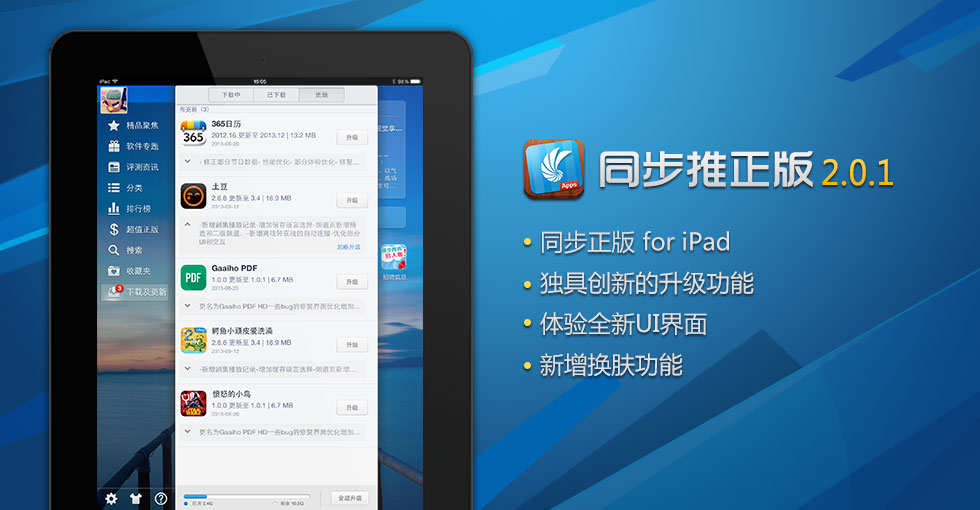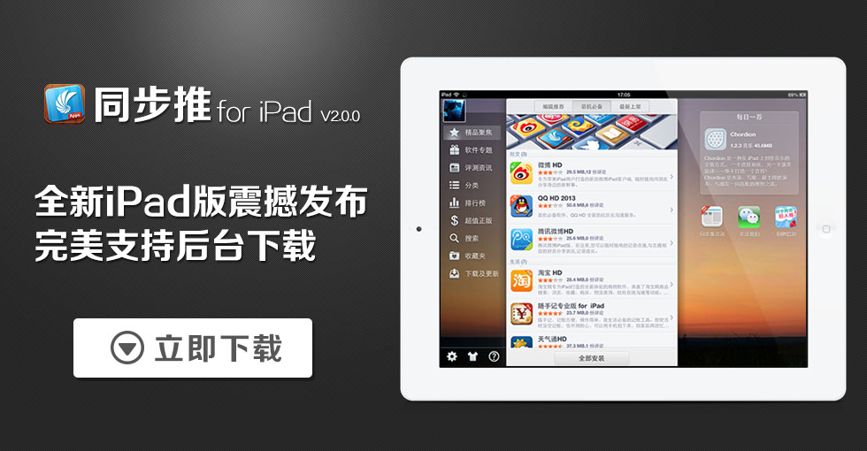 Чтобы установить программу на iPhone или iPad, ставим программу Tongbu для ПК, открываем ее и подключаем ваше устройство, затем автоматически откроется окно установки программы Tui в ваше устройство, нажать "Установить"