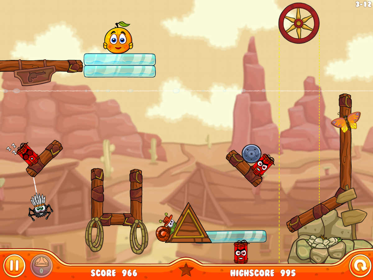Построй укрытие для защиты апельсинов, используя новые элементы головоломок, среди которых - стеклянные блоки, динамит, батут и другие!