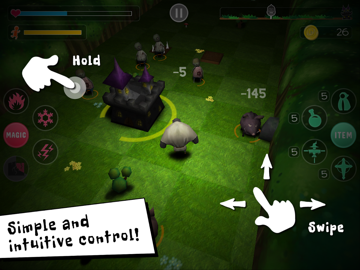 Игра на Android, в которой необходимо освободить замок от монстров. Монстры напали на замок и захватили его, вашей задачей будет освободить замок от них. С помощью своей силы и магии сражайтесь с большим количеством различных врагов, используя простое и интуитивно понятное управление.