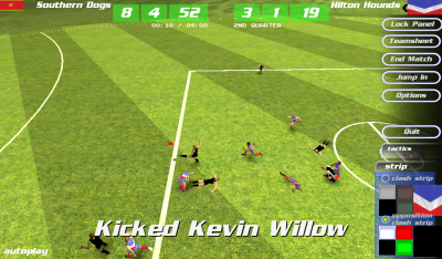 MegaFooty Quick Kick - спортивная игра рекби на андроид, где вы будете бороться с другими командами за кубок чемпиона. Вы будете играть в лигах AFL, VFL, SANFL и Wafl в Австралии, где вам предстоит управлять командой из 18 игроков. Эта игра потребует от вас быстрой реакции, чтобы поддержать стремительный темп игры, а также мастерское владение мячом. Игра порадует вас легким управлением и хорошей 3D графикой.