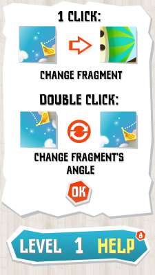 Главная задача - собрать из различных фрагментов картинку, но фрагменты перемешаны (некоторые попадаются из других картинок, некоторые перевернуты под разным углом). И с каждым уровнем фрагментов из других картинок становится все больше.