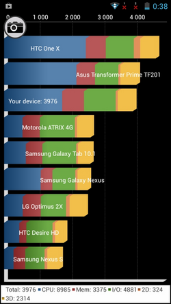 Antutu Benchmark 3.4 — около 14000 баллов, Quadrant — 3976 баллов