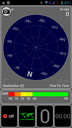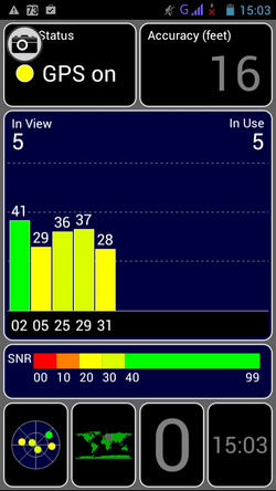 Холодный старт GPS занял около 2х минут, активных спутников 6 и уровень сигнала хороший: