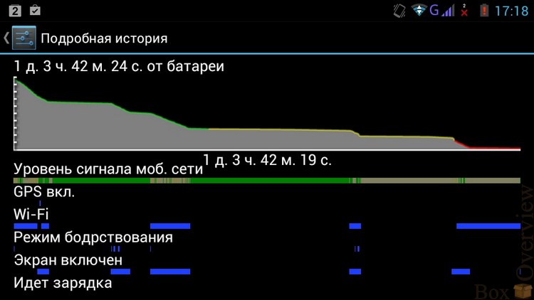 Активность на графике выше примерно следующая: 4 часа игр, 2 часа активного серфинга по Wifi, в остальное время Wifi просто включен.