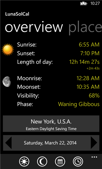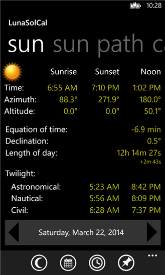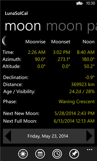 Приложение на windows phone, для любителей астрономии. С помощью которого вы сможете легко определить время восхода, заката Луны и многое другое, а также узнать местоположении и в какой фазе сейчас находится луна.