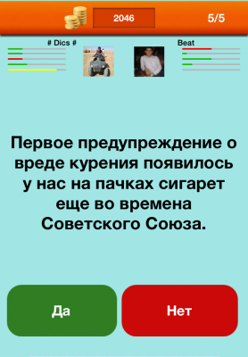 В этой интеллектуальной игре приведены 650 интересных фактов на разные темы - география, история, наука, искусство, кино, музыка, спорт, литература. религия и др. Вам нужно определить какие из них правильные, а какие нет.