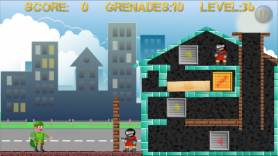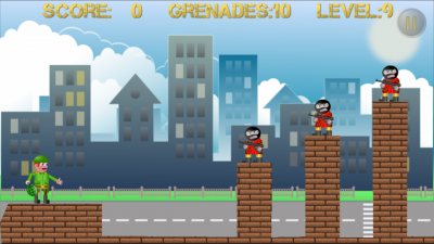 Очистите город от бандитов и защитите его жителей! Двигайте пальцем по экрану, для изменения направления и силы броска! Бросайте бомбы метко и уничтожайте бандитов! Соревнуйтесь с друзьями, кто больше наберет очков!