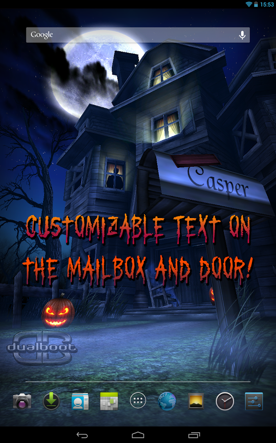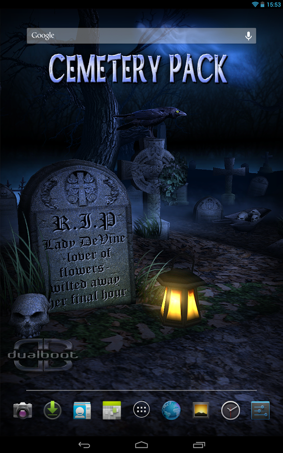 Обои на андроид не для слабонервных и тем, кого уже задолбали всякие листики-цветочки и моря... Кишат нечистью, приведениями, кровавыми надписями и видом на фамильное кладбище, с которого и идут все эти персонажи! Немного и правда жутковато, особенно в ночное и вечернее время - берегите нервы...