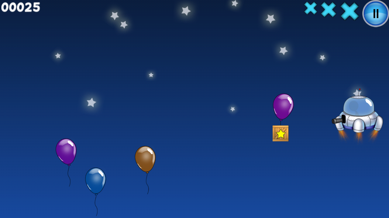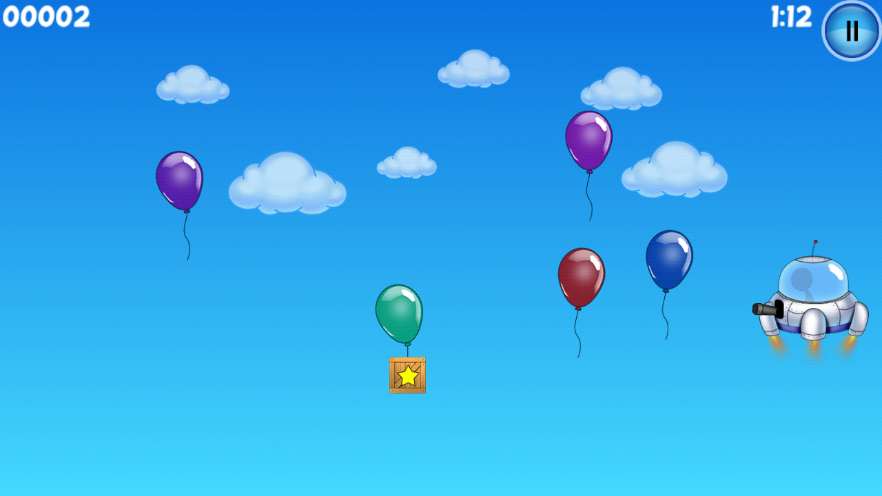 Это очень веселая игра в жанре тайм-киллера. Вы должны стрелять по воздушным шарам из пушки инопланетного корабля. У вас будет 2 режима игры- на жизнь и на время, смена дня и ночи, разнообразные бонусы. И не забудьте: по дальним шарам попасть будет сложнее. Эта великолепная семейная игра не даст вам скучать.